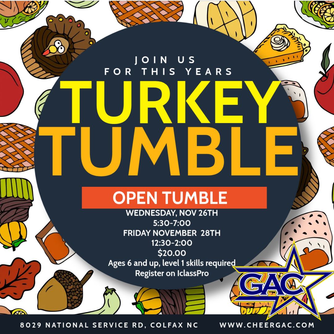 TURKEY TUMBLE IS BACK OVER THANKSGIVING BREAK! CLICK HERE TO REGISTER AND COME TUMBLE